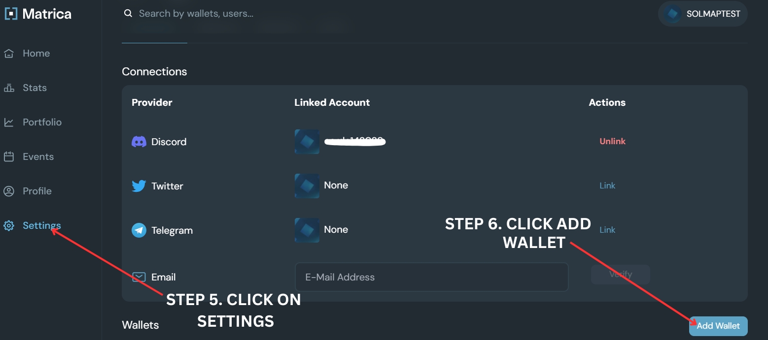 Step 2. Click " Manage Wallets " - it doesn't matter if you don't have a profile on Matrica as you can still set it up in this process.