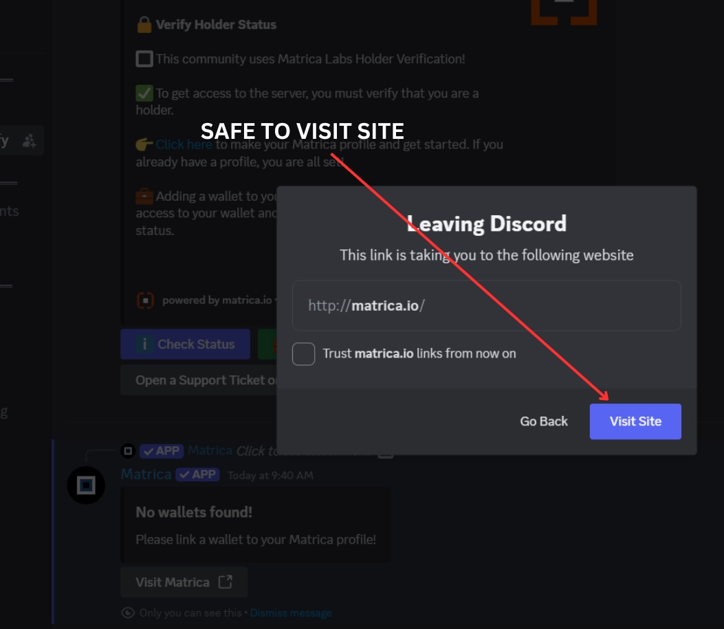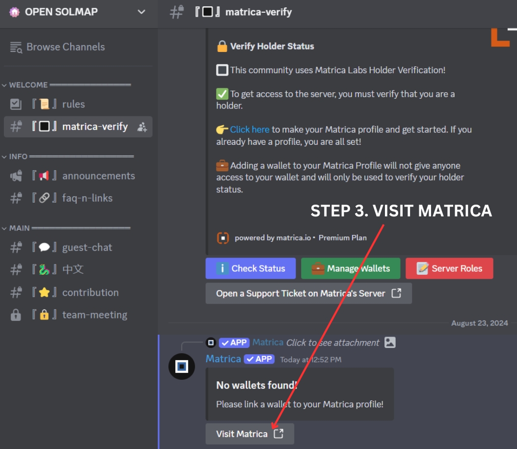 Be verified as a holder on the Discord channel. Here are the steps below on how to verify-link your wallet in your Matrica.